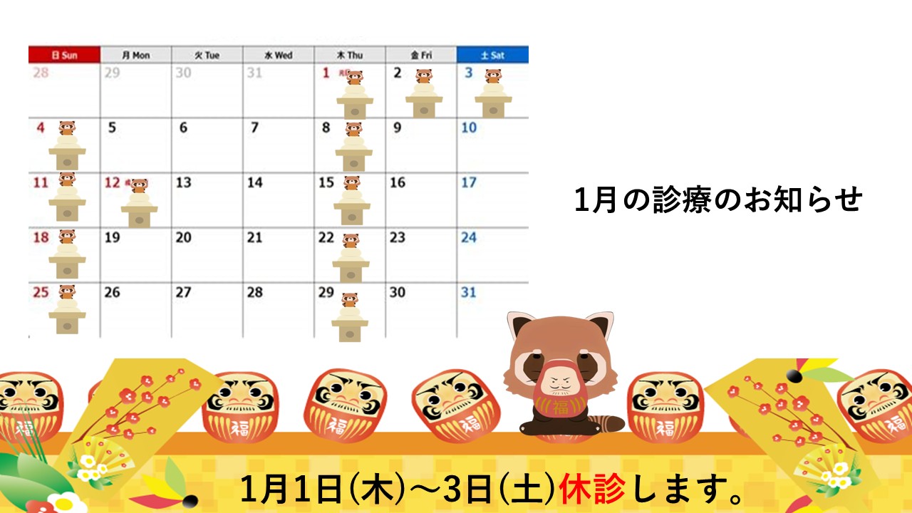2025年1月は、年末年始のほか、13日(月)/14日(火)は休診です。